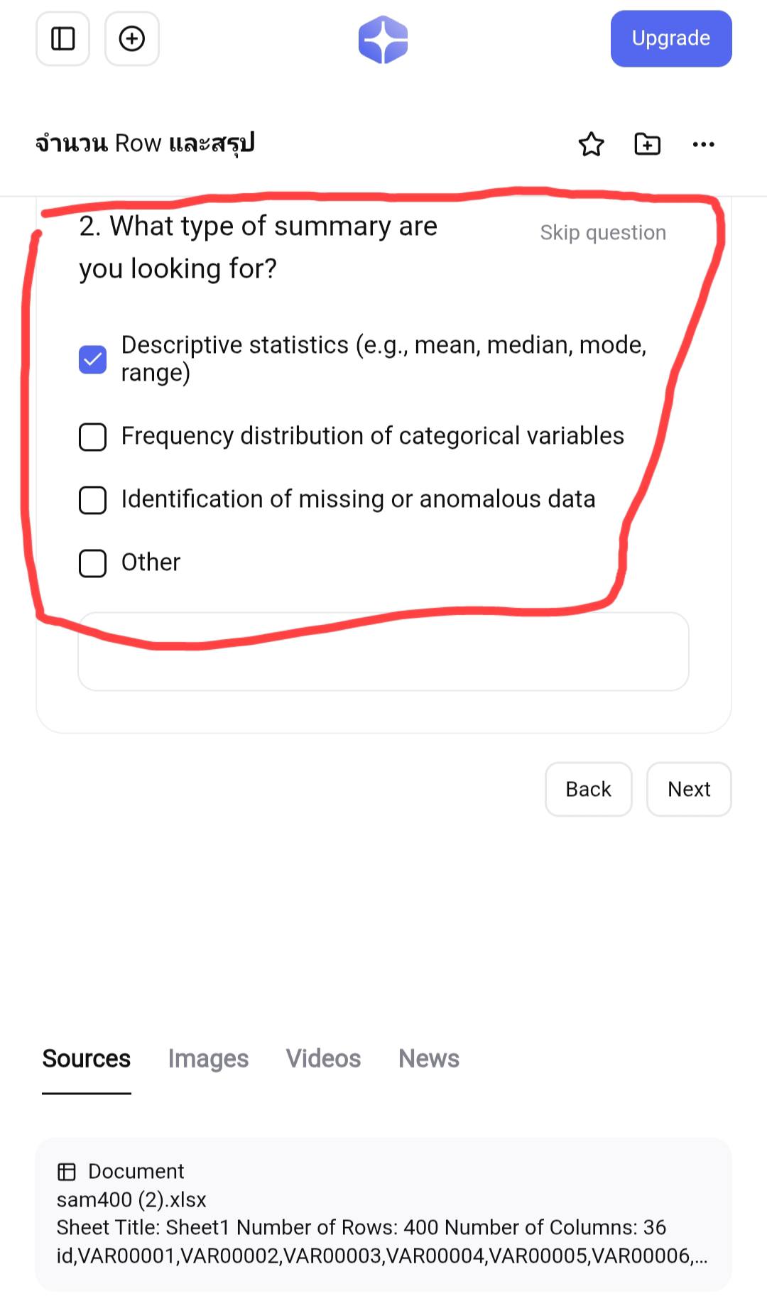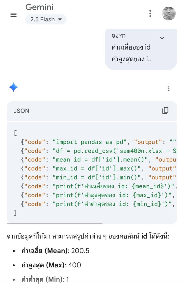 การประมวลผลข้อมูลจากแฟ้ม excel ารประมวลผลข้อมูลจากแฟ้ม excel พบว่า เอไอ หลายตัว รับแฟ้ม xlsx ได้ แล้วประมวลผลข้อมูลใน sheet ได้อย่างถูกต้อง จึงสร้างตัวอย่างข้อมูล 400 (sam400) รายการ แล้วส่งให้ A.I. ประมวลผล ได้แก่ chatgpt, perplexity, gemini, you, copilot ได้ผลดังในภาพ